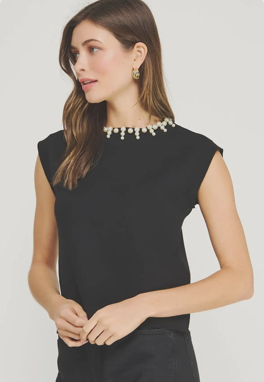 Pearl Trimmed Jewel Knit Top