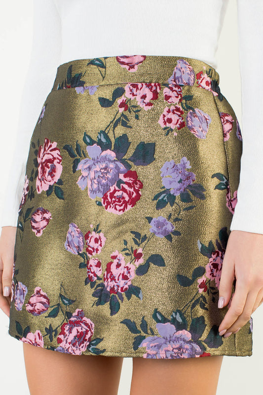 Gold Floral Print Shimmery Skirt