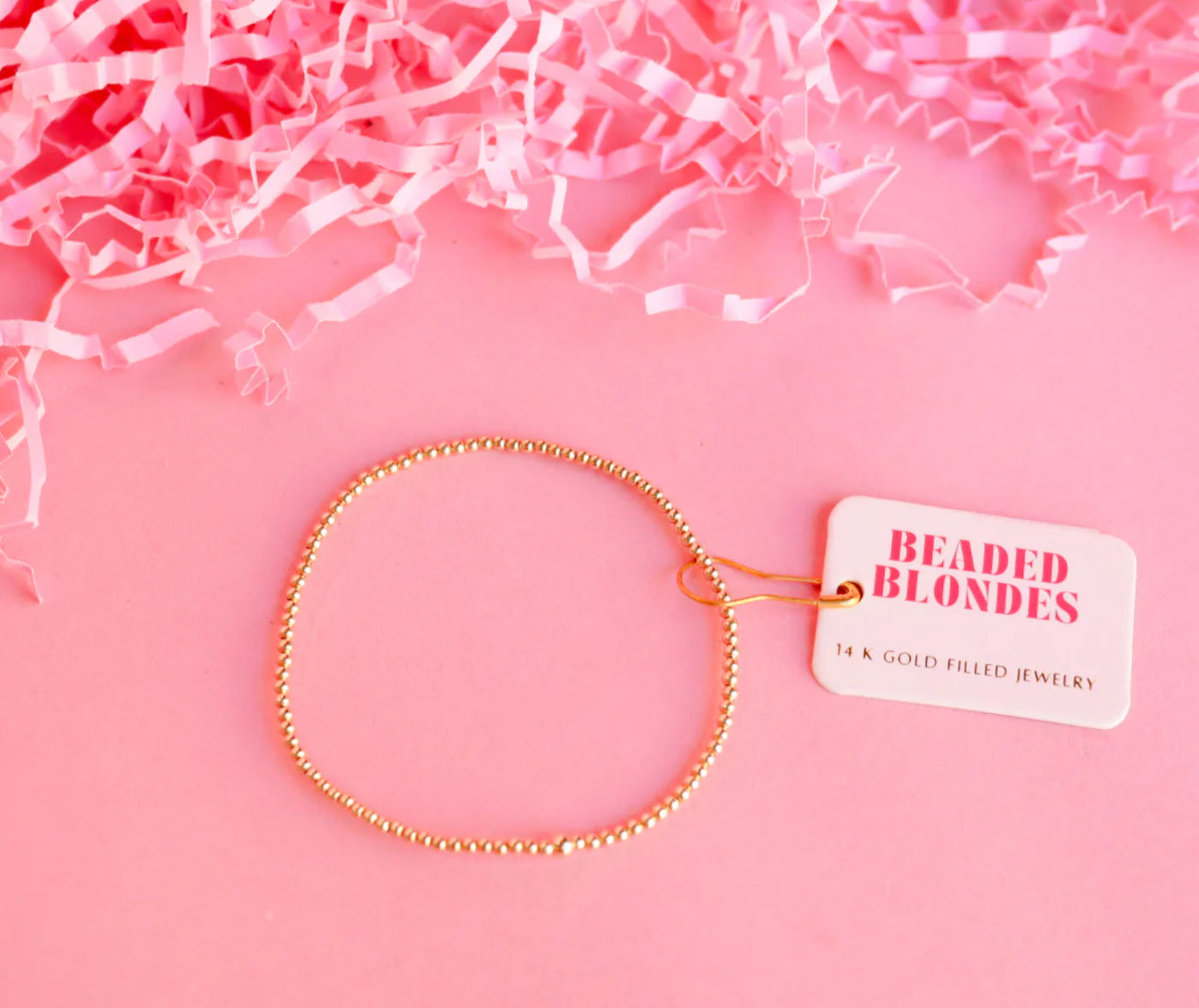 Petite gold beaded stretch bracelet. Made from 14 k gold filled beads so perfect for everyday wear! Sweat proof, water proof and tarnish free!