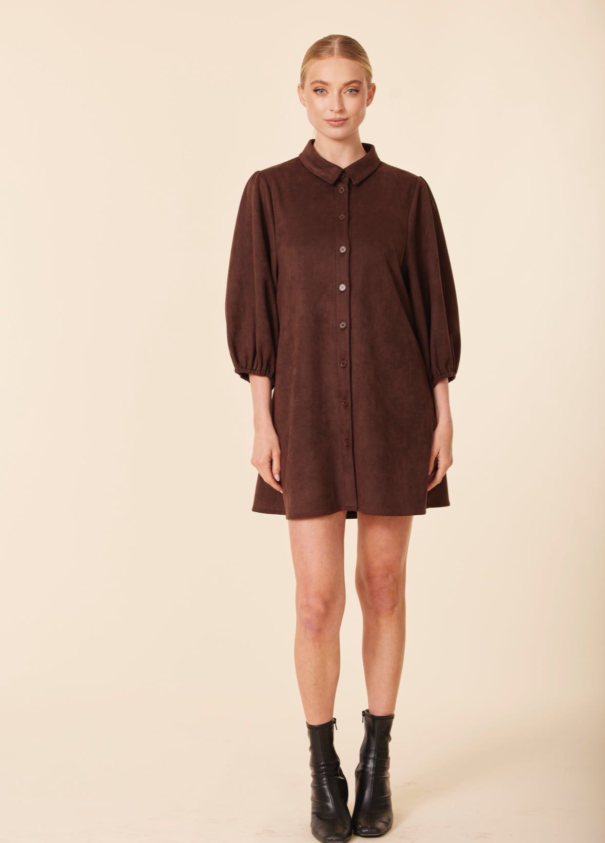 Exaggerated Sleeve Suede Dress