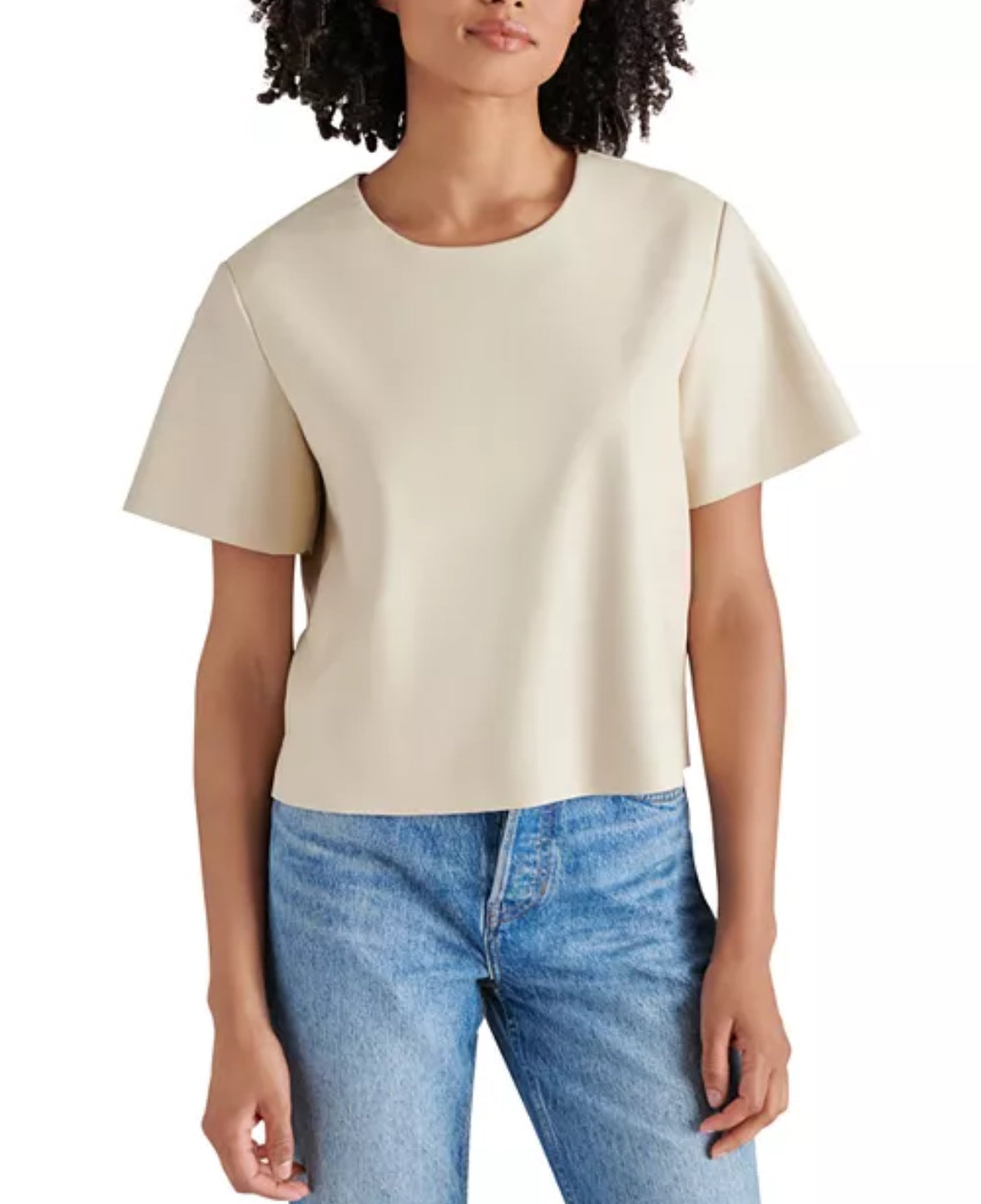 This EZRA faux-suede short-sleeved top features a sleek zip-up design at the back, combining modern style with easy wearability. Its soft texture and tailored fit make it a versatile piece for sophisticated casual looks. Ideal for layering or wearing alone, it offers both comfort and a polished finish.