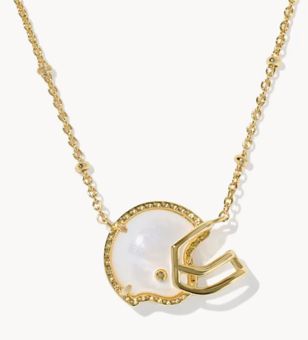 Down, set, hike! Get ready to score a style touchdown with the Football Helmet Gold Short Pendant Necklace. This pendant features the cutest football helmet silhouette, finished with metal detailing and our signature hoofprint frame. Trust us: you’ll be running this one back again and again.