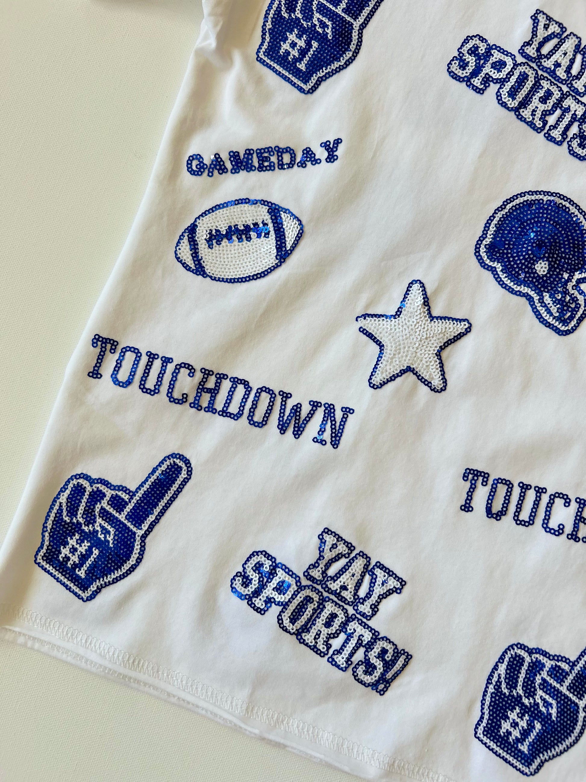 Gameday Sequin Tee in Blue & White