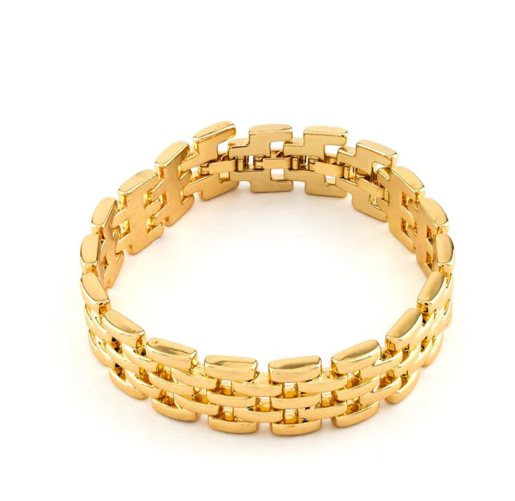 - Indulge in luxury with the Morris Link Bracelet. Crafted in timeless gold, this elegant piece exudes sophistication and adds a touch of glamour to any outfit. Elevate your style with this exquisite accessory that will be sure to make a statement.
