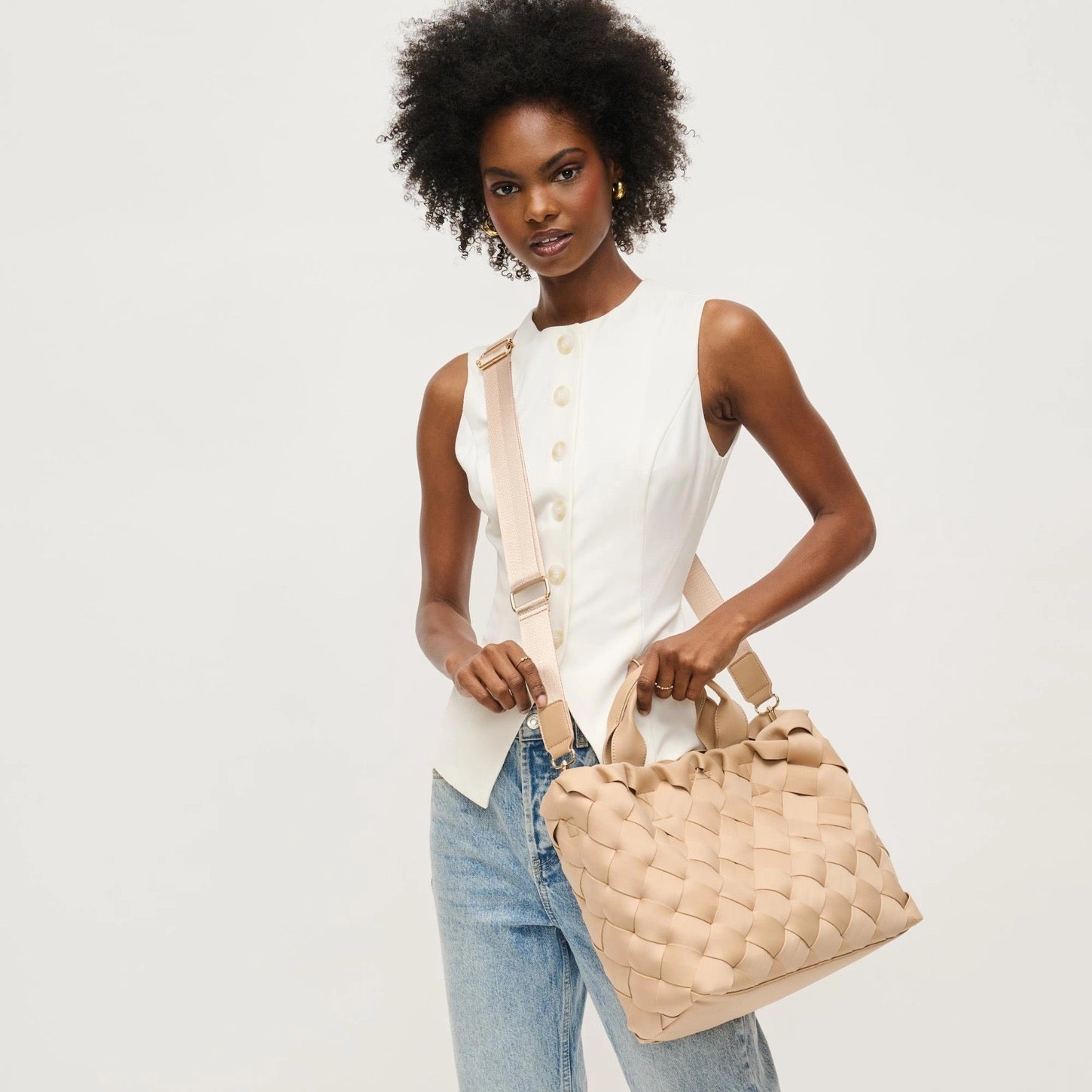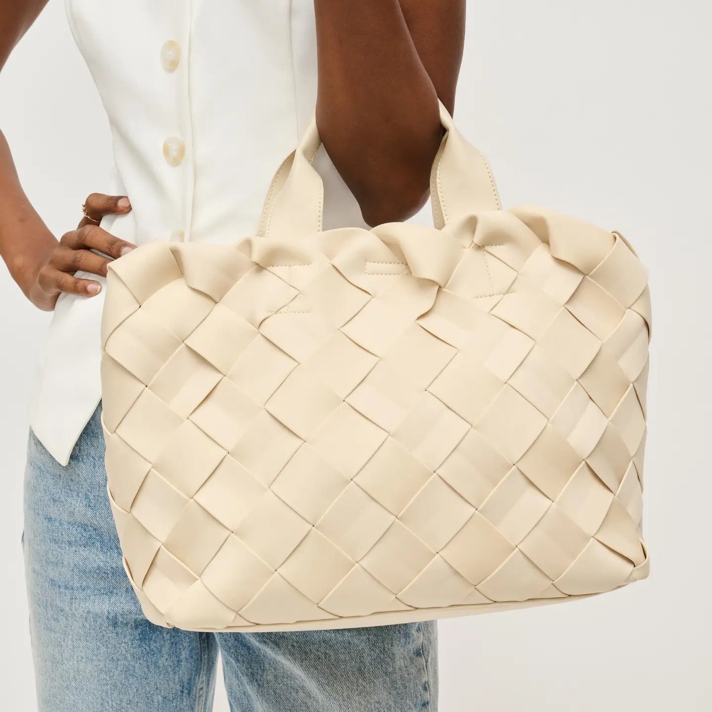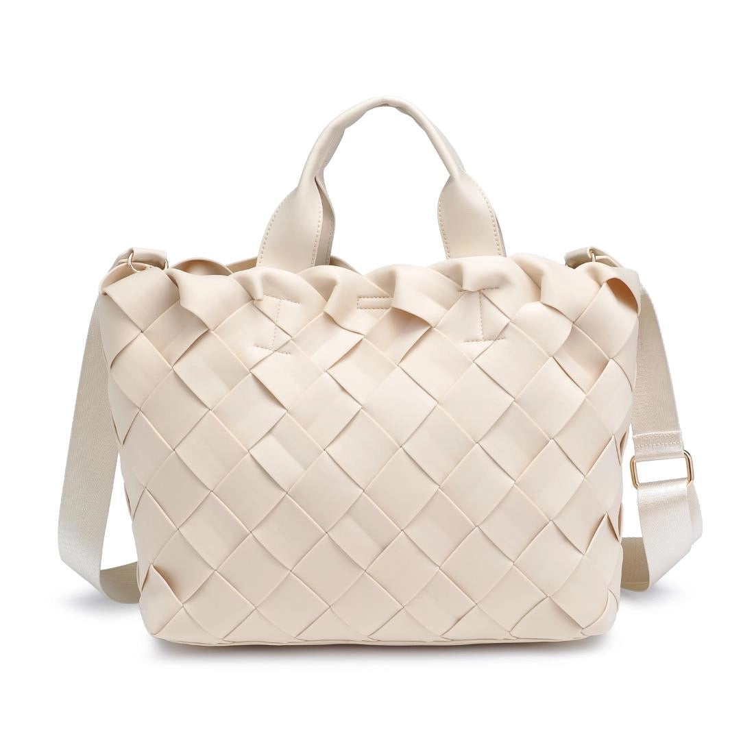 Unleash your style with the Ruth Tote, where contemporary design meets everyday functionality. This chic handbag features a stunning woven exterior, seamlessly blending modern flair with timeless elegance. The spacious interior is perfect for your essentials, whether heading to the office or out for the evening. Crafted from vegan materials, the Ruth Tote reflects your commitment to ethical fashion. Versatile and stylish, it effortlessly transitions from day to night. Invest in a bag that embodies quality and sophistication—your perfect companion for every occasion. Don’t miss out on making this stunning piece yours! *Item Type: Tote *Material: Neoprene *Closure: Magnetic Snap *Exterior Details: Woven Design, Adjustable/Detachable Shoulder Strap, Gold Hardware