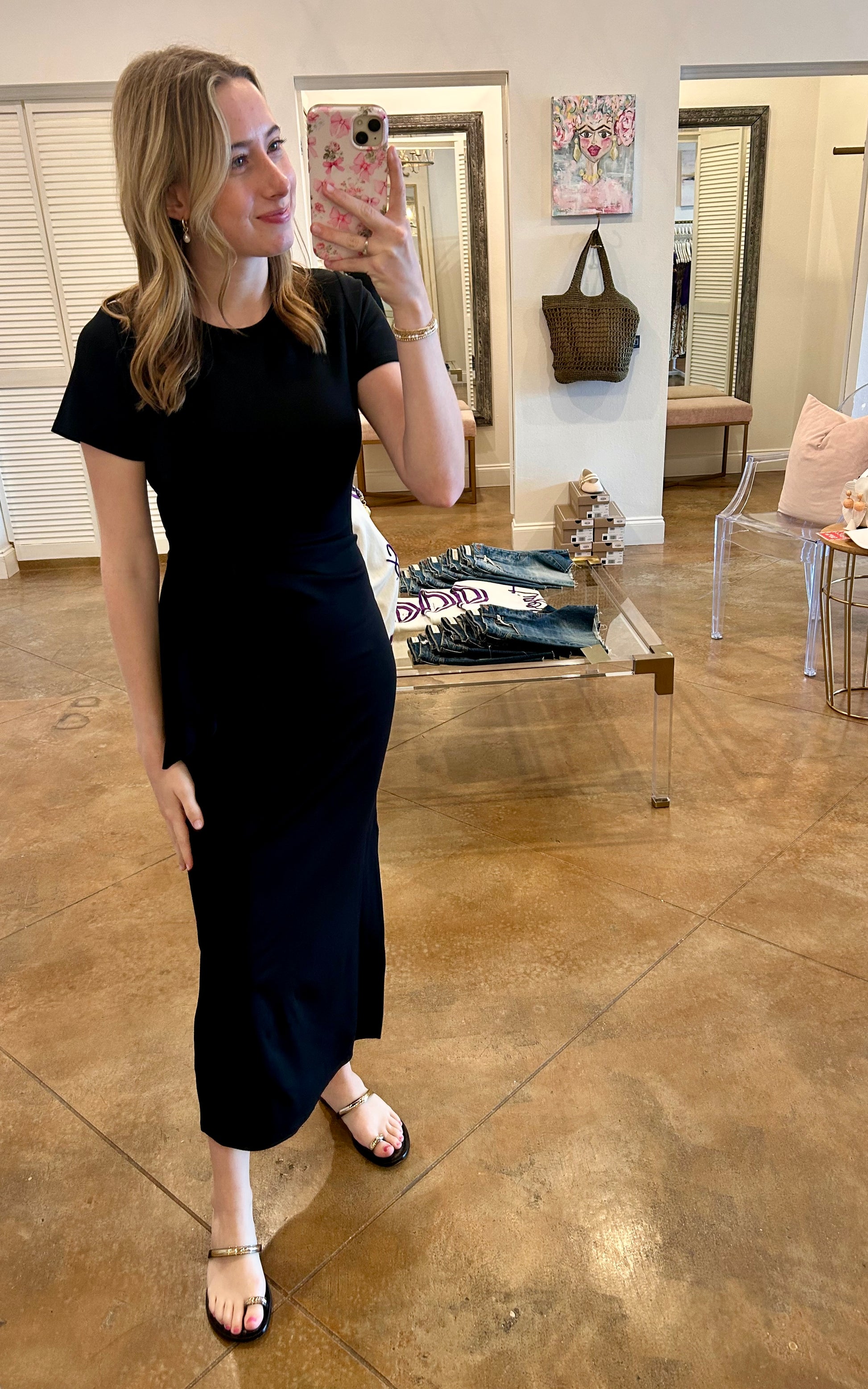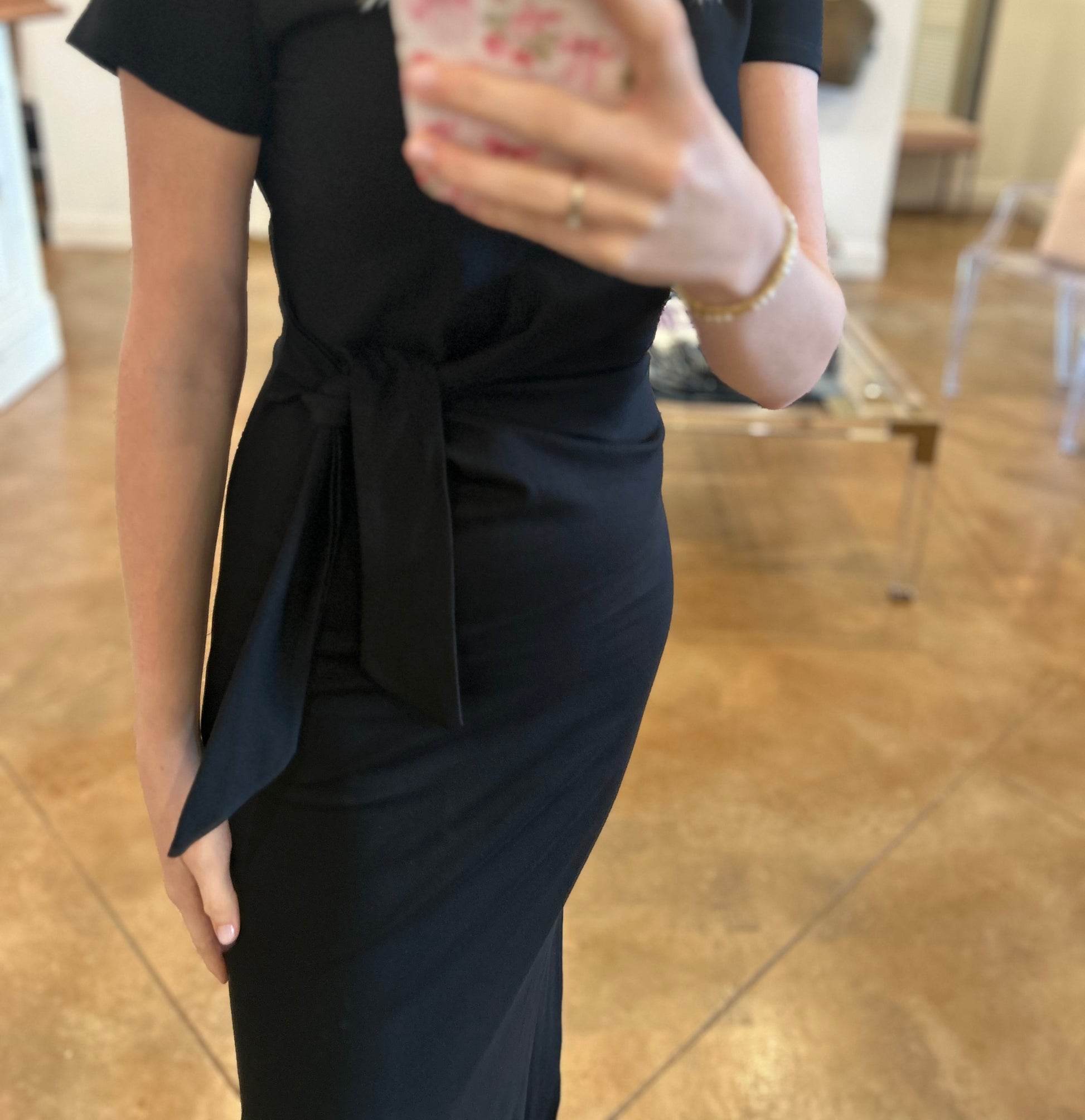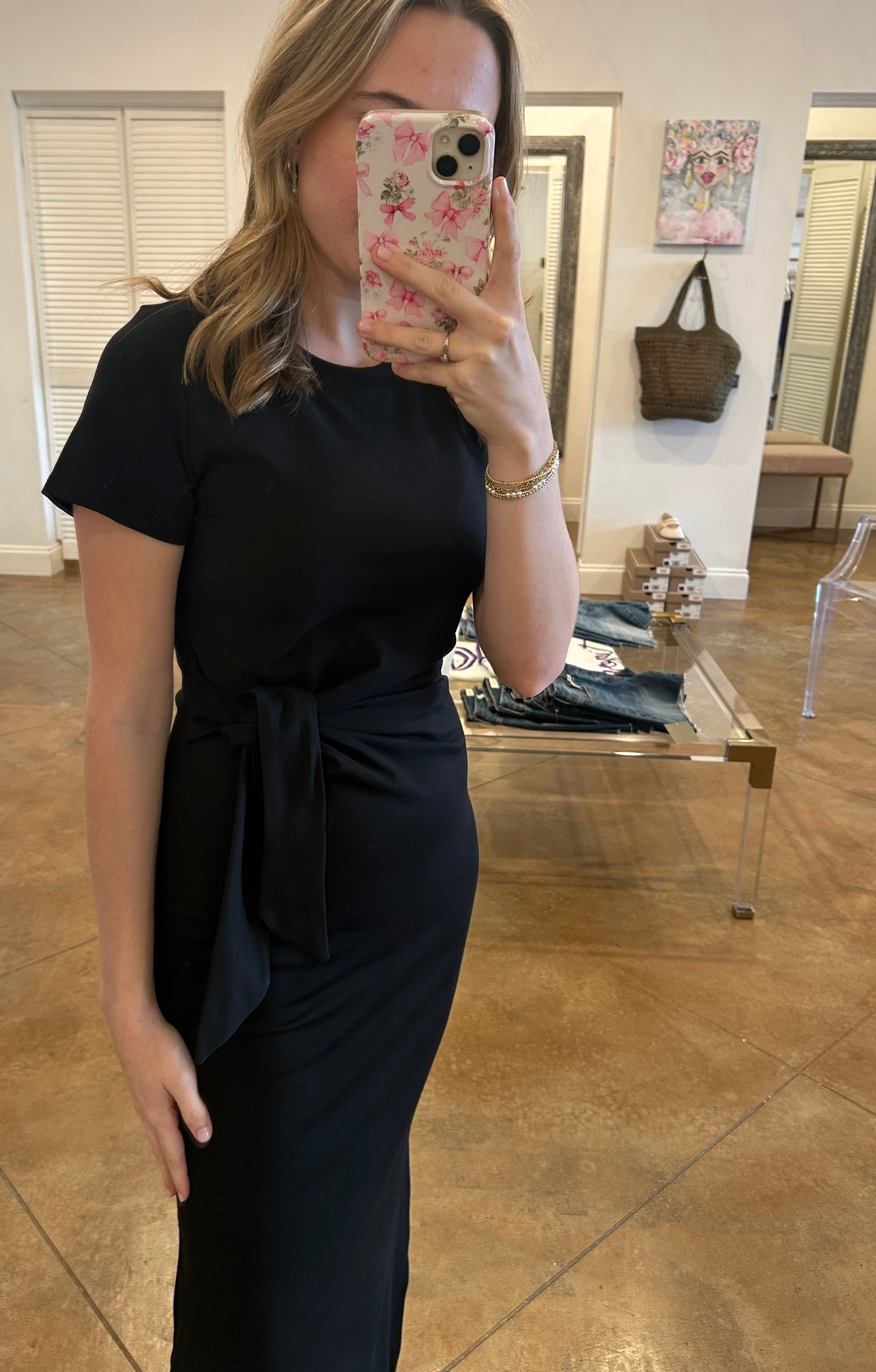 The Zoe Maxi in Black is a versatile and effortlessly stylish piece. Its bias cut and side tie design create a flattering silhouette, perfect for any body type. From day to night, this maxi dress can easily be dressed up or down, making it a must-have for any wardrobe.